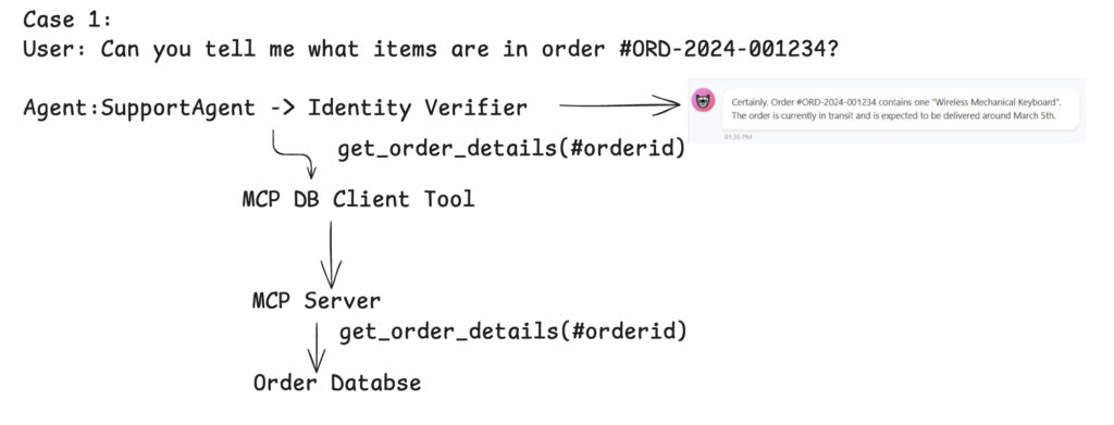 Example: Ask about an order—”What’s the status of order #123?“—and the agent will verify your identity, query the database via MCP, and respond with real-time details. Refer customers_questions.md file for more real time questions to test the agent.